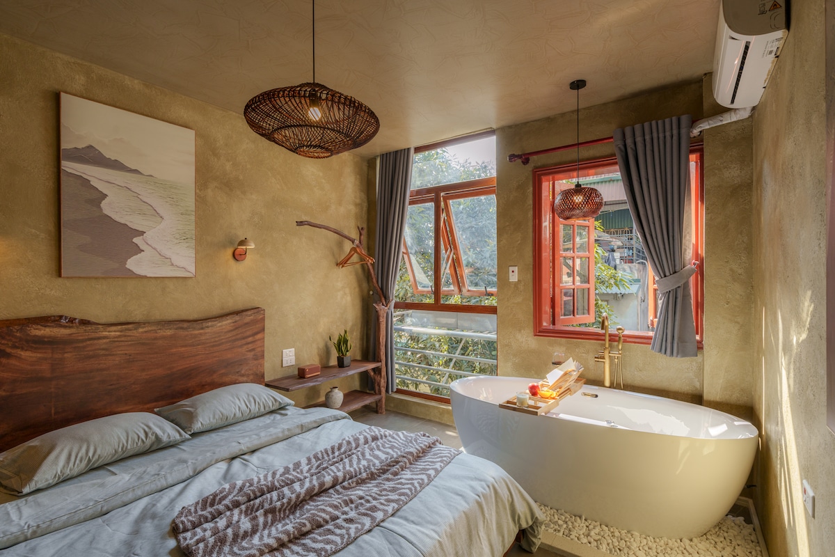 Reinnovated 30yo house into a WABI-SABI Insta-worthy studio straight out of Pinterest📸 🚊SO CENTRAL!!! 2mins on foot to Food St, Train St, Imperial Citadel, etc. ✨5-star hotel-grade mattress, black out curtains, netflix, jacuzzi 🛀 🙋nice hosts who guide you thru every step of your stay-or stays invisible if you prefer-plus a local friend 4life 💻CAT6 cabling for business-grade Wi-Fi & steady LAN (💕 our diginomads) 🌿quiet neighborhood that makes you forget you’re right in the HEART of Hanoi
