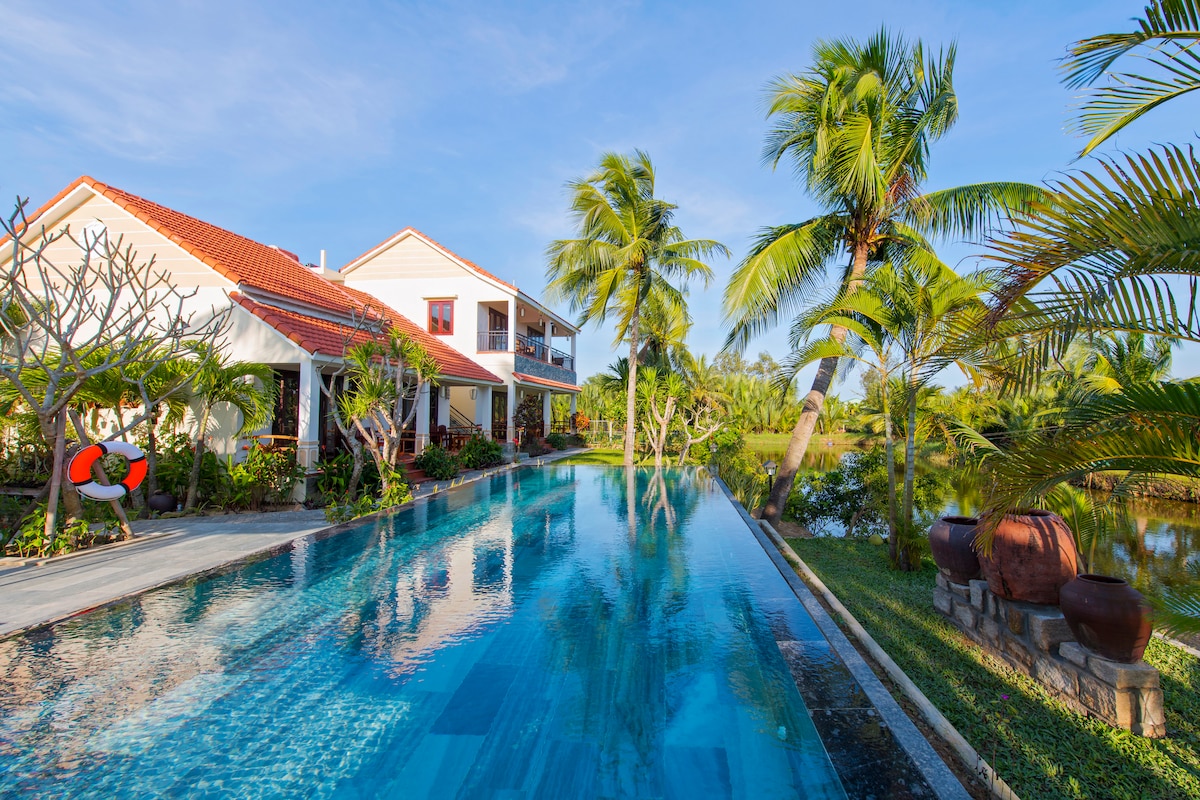 Discover this enchanting villa nestled in the heart of Hoi An's Old town, where the harmony of modernity and tradition unfolds before your eyes Minimalist design with warm wooden furnishings Prime location - 5 minutes stroll from Hoi An Old Town Charming view of the Romantic Hoai River and garden Rooftop rooms offer both city and river views Spacious rooms with large beds and soft mattresses Swimming pool Free bicycles Receive a free map for your convenience ATM, restaurants, and shops nearby
