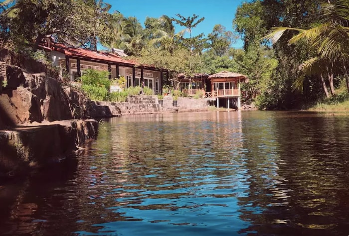 Just steps away from our private beach, float above a stream & look out at the ocean from your bed. Part of Bamboo Cottages, a small family-run boutique bed & breakfast, this one of our most special rooms. There's a floor-to-ceiling view of a cascading stream, a handcrafted tea table & your own deck to enjoy a special view of the river & sea. Included are breakfast on the beach, unlimited drinking water & 2 hours use of our kayaks & snorkeling masks. Pls see our other listings for other options.