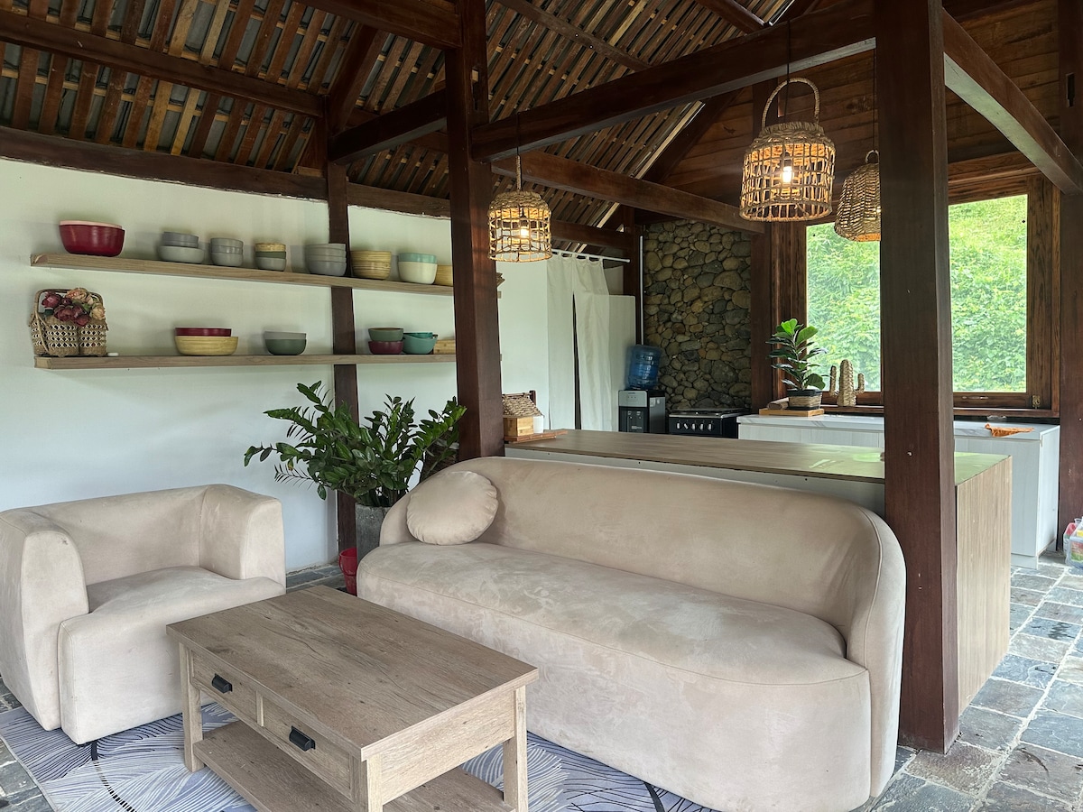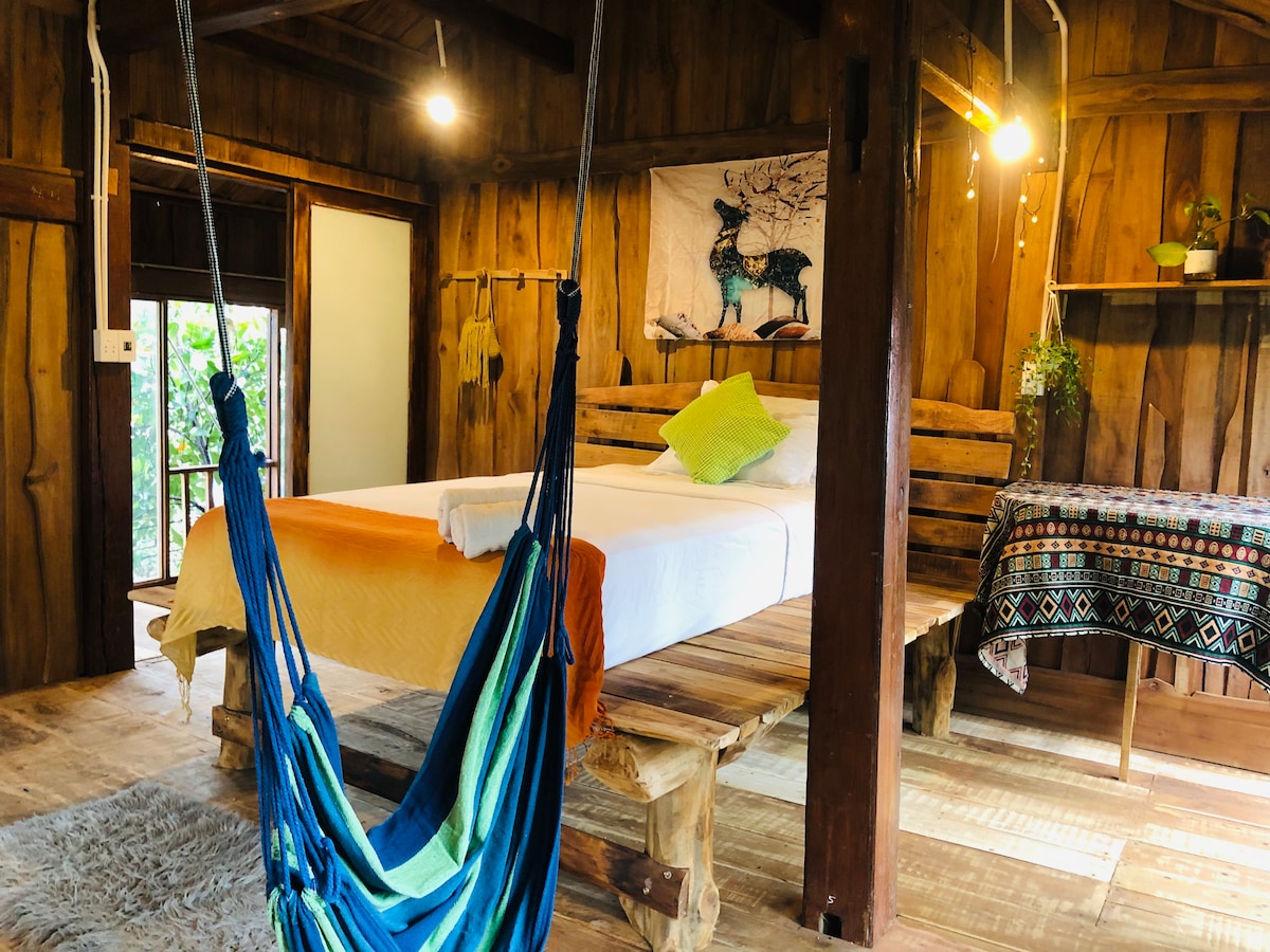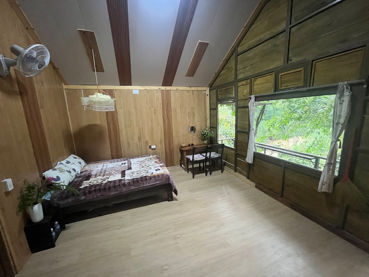 This cabin is built with love by my father, and I, a recent Gen Z graduate, helped decorate it. ***highlights: Nature-Embraced Space: Our room is surrounded by lush greenery, creating a fresh atmosphere. Spacious Living: The cabin features over 40m² of thoughtfully designed space, including a cozy bedroom, work desk, spacious bathroom and open balcony. Large Shared Kitchen: Enjoy cooking and sharing meals in our 200m² communal kitchen. Fruit Garden: , jackfruits, coconuts, durians, papayas.