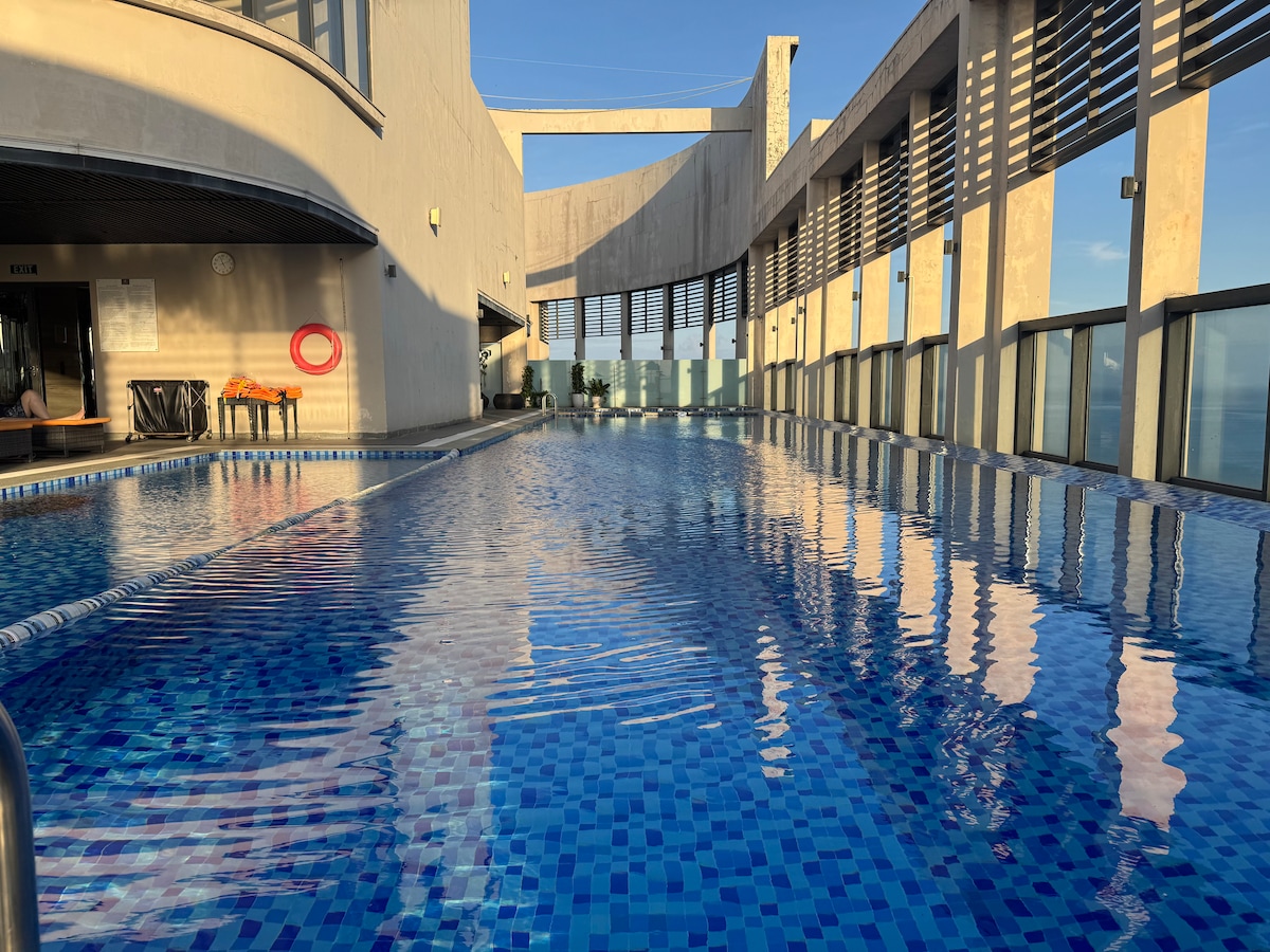 The apt is located in the heart of Halong Marina - Bai Chay Beach area, just steps from the beach and very close to cruise ports for Ha Long Bay tours. Enjoy a spacious studio with a king bed, sofabed, full kitchen, washing machine, and modern bathroom. Guests have access to an infinity pool, jacuzzi, spa, gym, and on-site parking for an extra fee. Perfect for relaxing stays, business trips, or exploring Ha Long Bay and Cat Ba Island. Our apt offers a relaxing and comfortable ambiance.