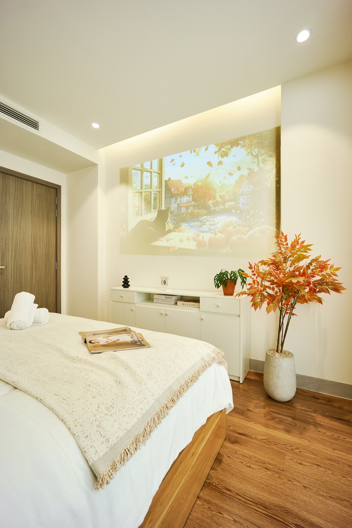 Autumn retreat — warm tones, soft textures, and cozy corners made for slow mornings & movie nights. Our 1BR is spacious w/ comfy sofa bed, and a full kitchen that you can whip up a meal before streaming Netflix on the 100-inch projector screen. Tucked in a quiet cul-de-sac by Han Market and just minutes from Dragon Bridge, it offers both city life and peace Clean, calm, and stylish — like golden hour captured in a room. Take the elevator up, drop your bags, and let Da Nang slow down for you.