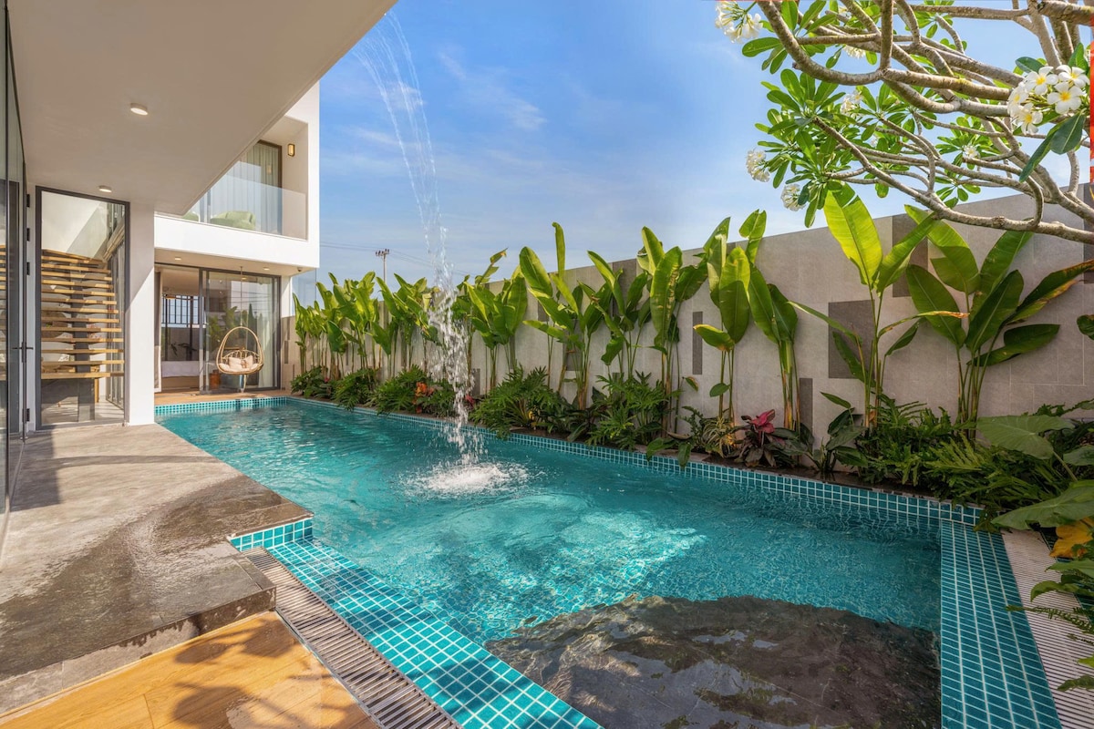 🏡 Welcome to FEN VILLA❤️ 🛏️ 5 bedrooms – 6 beds – 6 bathrooms – spacious living room & kitchen with AC and ceiling fans 💦 Private pool cool – floating toys included 🎱 Billiard table – free BBQ charcoal 🍉 Complimentary welcome fruits & drinks ✈️ Free airport pickup for bookings of 4 nights or more 🌴 With a warm tropical style, the villa is perfect for groups of friends, colleagues, or families 🏖️ My Khe Beach is just a 5-minute walk away, surrounded mini-marts, cafés, and restaurants😍