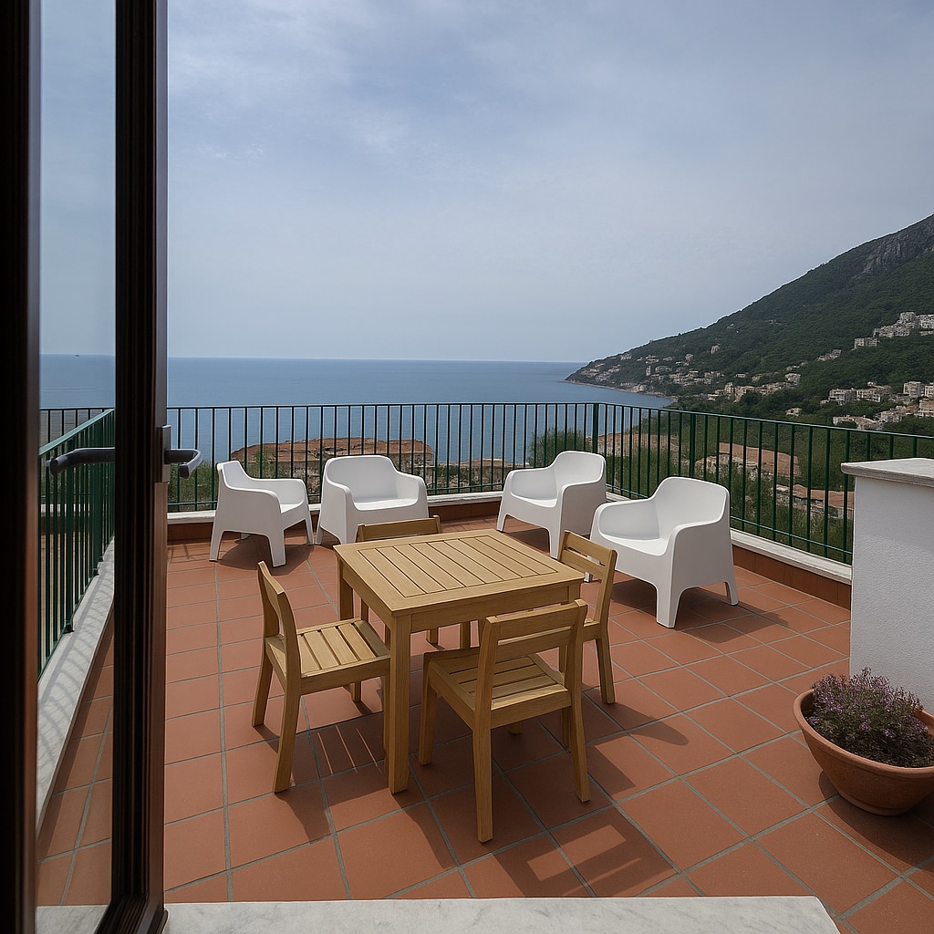 Flat sea view situated on the famous "Path of gods", ideal place for sportiv, romantic and lovers of hiking guests, at 5 km from the fascinating Positano. The appartament has all facilities: private terrace with unic scenery, kitchen, included breakfast and city tax. Is excluded trasportation of luggages but there is possibility to reserv with extra cost (5 euro per bag) a porter.