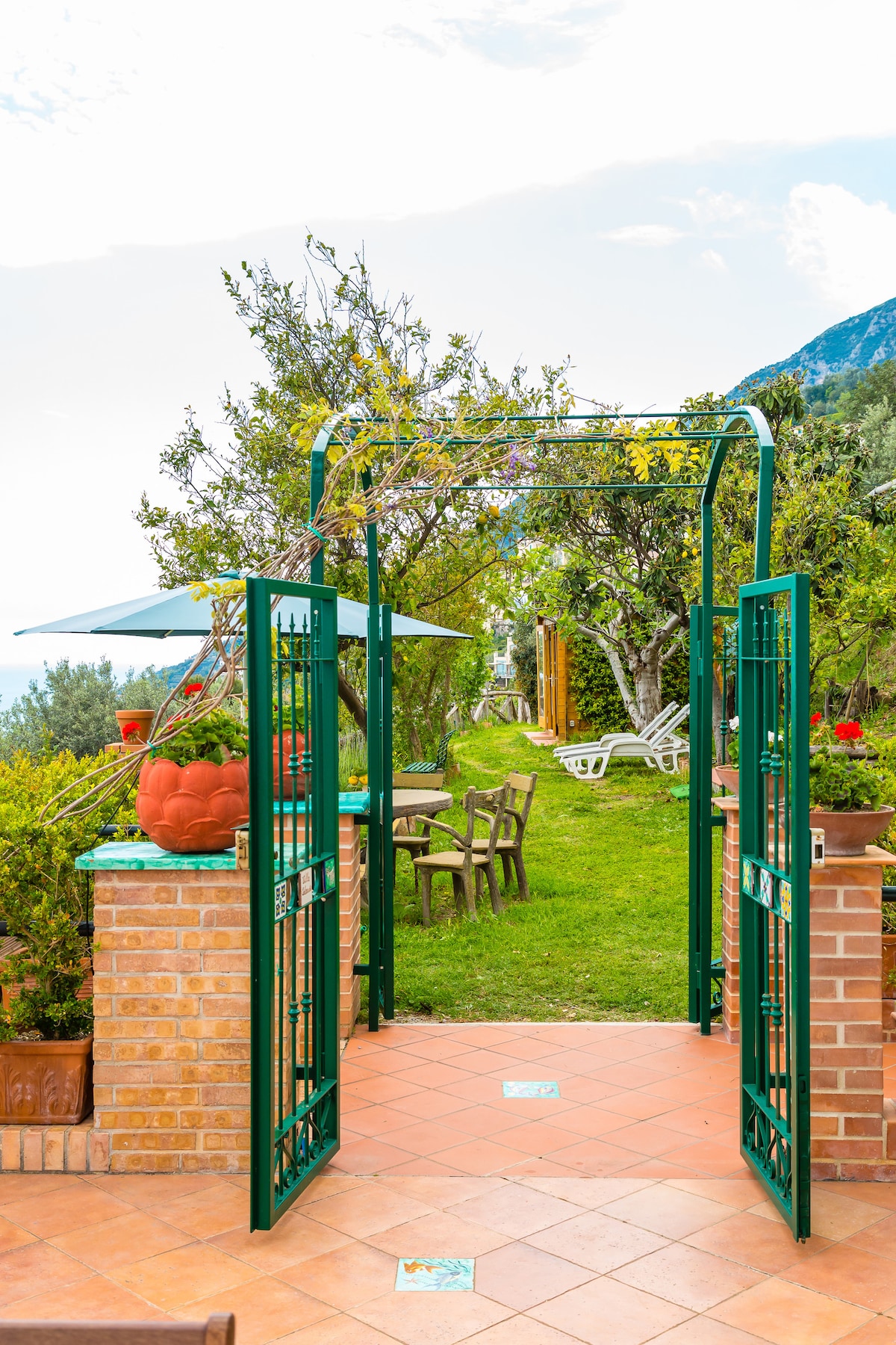 The Villa is in a dominant position on the sea, surrounded by gardens of lemon and orange trees. From the terrace, a breathtaking view that embraces the bay of Amalfi from Capo Vettica to Capo d'Orso, the historic center and the Cathedral of Amalfi and the opposite coastline from Salerno to Capo Licosa. Thanks to the isolation of part of the terrace it is possible to sunbathe in absolute privacy. At 350m, a Club pool/restaurant is accessible only at the conditions listed in Access for guest