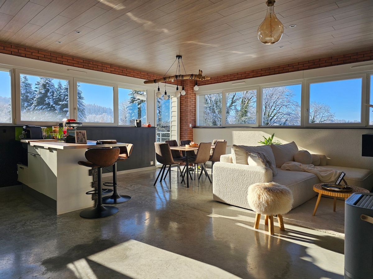位于巴塞尔附近的时尚公寓,周围绿树环绕