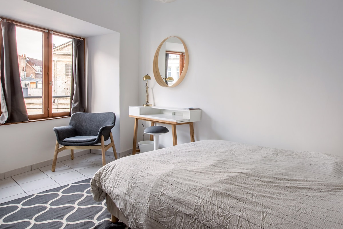 〉An Airbnb located in the city center. Enjoy the comfort of this modern apartment : ・Safe neighborhood ・50 m²/538 ft² apartment ・Queen size bed ・On site: washing machine + dryer ・Equipped kitchen: microwave + oven + dishwasher ・Restaurants and shops nearby ・Public transportation nearby 〉Book your stay in Lille now.
