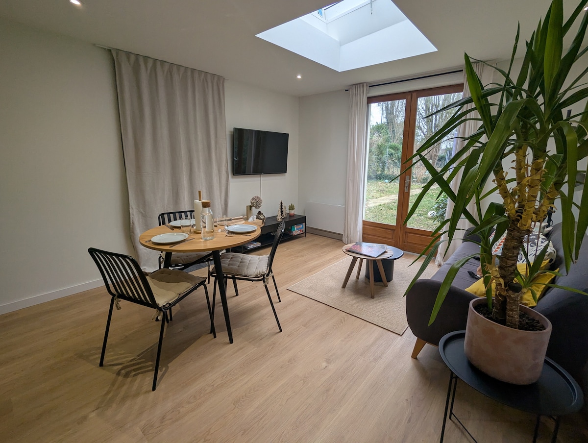Notre studio de 25m2 est idéal pour un couple à la découverte du Nord ou pour une personne qui vient travailler sur la Métropole lilloise. Lové au fond de notre jardin, vous bénéficiez d'un accès privatif au studio et d'une vue faite de plantes et arbustes sans vis à vis. Situé à 7 minutes à pied du centre-ville et 5 minutes des champs, vous pourrez profiter de Wambrechies, de ses guingettes, restaurants, des commerces ou même faire des courses grâce à la supérette située en face de la maison.