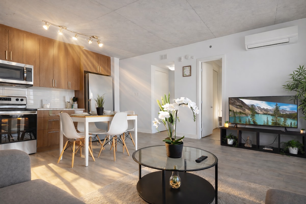 Welcome to our stunning modern loft in the heart of downtown Montreal, just steps from the Old Port! This stylish loft boasts a sophisticated open-concept design, high-end finishes, and a fully equipped kitchen perfect for home-cooked meals. Relax in the luxurious bedrooms with plush bedding and unwind in the elegant living space. With top restaurants, boutiques, and nightlife at your doorstep, experience the perfect blend of comfort and city excitement!