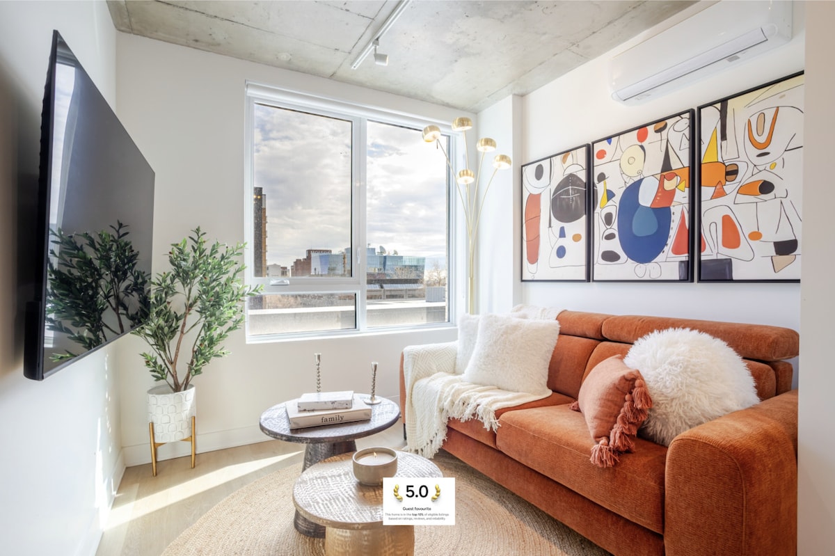 Enjoy a modern 1-bedroom apartment in the heart of Montréal, perfect for up to 4 guests. Featuring a queen bed, a comfortable sofa bed, rooftop pool access, and EV parking, this stylish space offers both comfort and convenience. Just minutes from Downtown, the Old Port, and Plateau Mont-Royal, it’s the perfect home base for exploring the city.