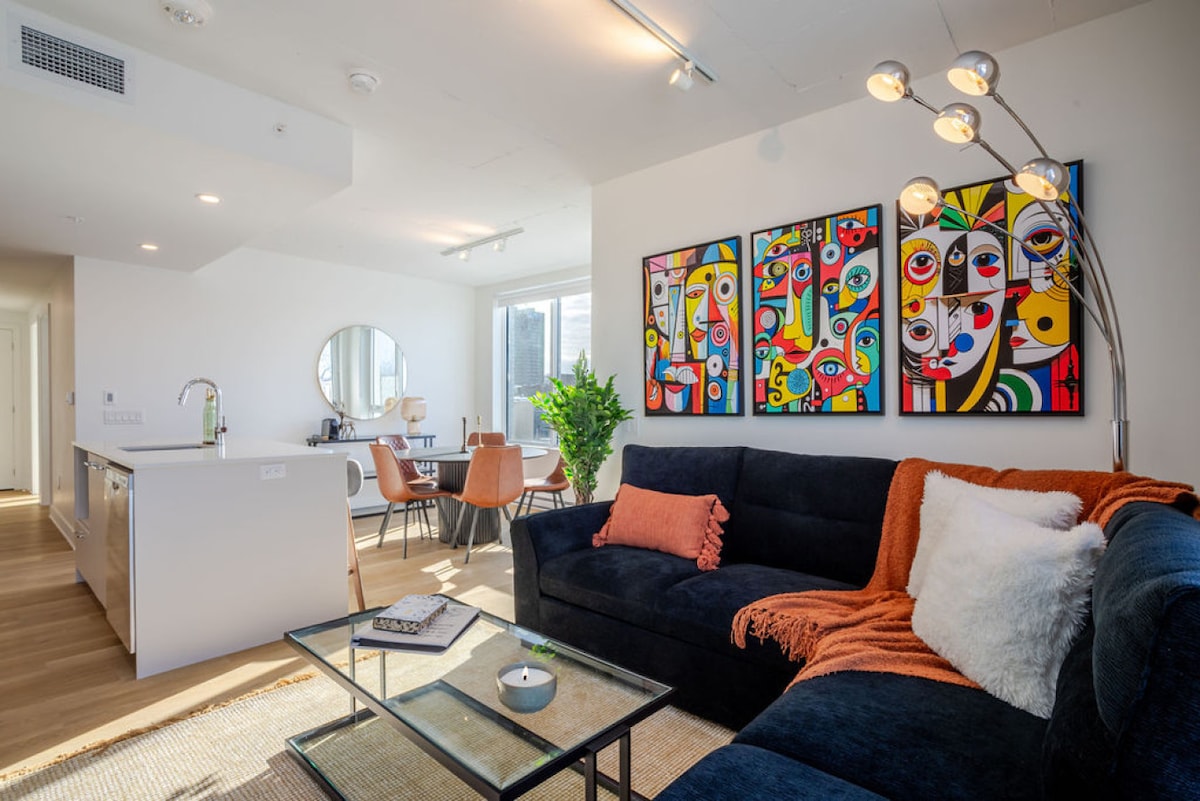 Welcome to our stunning modern suite in the heart of downtown Montreal, just steps from the Old Port! This stylish suite boasts a sophisticated open-concept design, high-end finishes, and a fully equipped kitchen perfect for home-cooked meals. Relax in the luxurious bedrooms with plush bedding and unwind in the elegant living space. With top restaurants, boutiques, and nightlife at your doorstep, experience the perfect blend of comfort and city excitement!