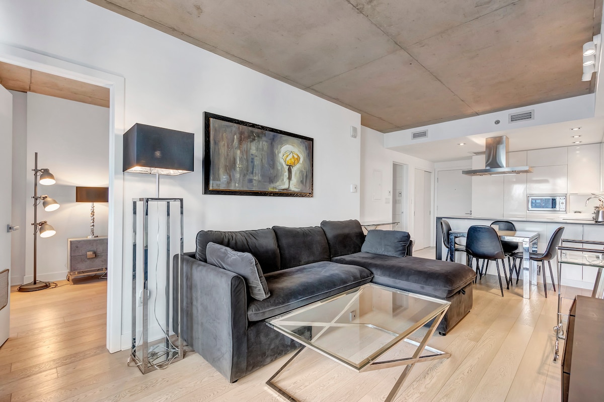 Designer one-bedroom condo in the heart of Montreal’s Village! Enjoy hardwood floors, a stunning spa-style bathroom with heated tiles and rain shower, central A/C, and a private balcony. The remodeled kitchen features high-end appliances and a breakfast bar. Relax with Smart TV, fast Wi-Fi, and a cozy electric fireplace. Steps from Beaudry Metro, cafés, dining, and nightlife—your spotless, stylish home away from home!