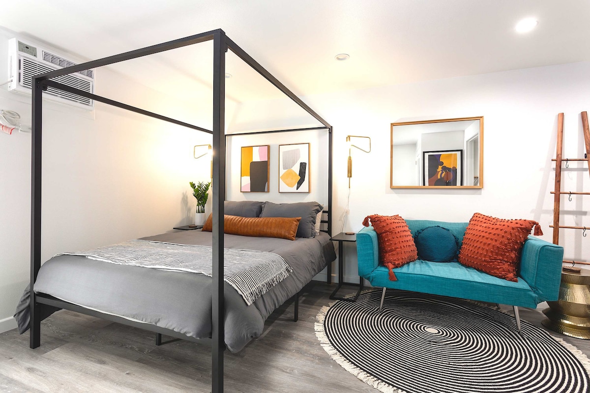 This newly renovated 500 sq. ft. modern Farmhouse Cottage, located in a safe, walkable neighborhood is the ideal getaway for two adults. Featuring a full kitchen and ensuite bathroom, this light, bright space has quartz countertops, wood floors, marble tiled bathroom, brand-new appliances and furnishings. Perfect for the visiting remote worker or traveler, we’re located just one mile from the heart of fashionable Culver City, 6 miles from Santa Monica, and 15 minutes from LAX.