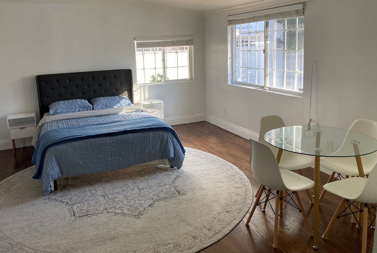 Popular 2-bedroom in central location with full kitchen and washer/dryer in home. Just a 2-block walk to restaurants and an affordable co-working space. Easy access to LA's popular tourist attractions, museums, hospitals, and shopping malls in Hollywood, Beverly Hills, and the beach cities. Also an ideal place to safely self-isolate if needed, with space to workout, watch TV, and relax.