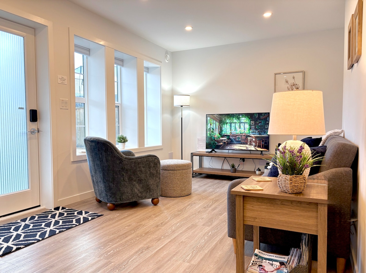 Discover your coastal retreat in your 2-bedroom spacious suite. Perched on a hill just 3 blocks from the ocean and its 5 km long sandy beach, our location provides a serene escape. Immerse yourself in comfort in your cozy living room in front of a gas fireplace. Prepare meals in your own full sized kitchen with an ocean glimpse. Equipped with full bathroom and in-suite laundry. Local amenities at your fingertips, with a corner store & bakery just up the hill & grocery stores just 1.5 km away.