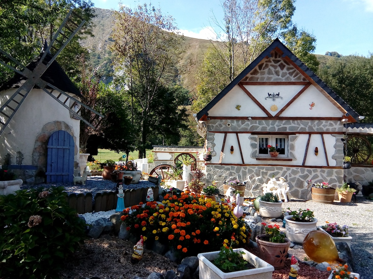 This is a neat cottage for a couple or a little family (2 adults & 2 children) situated in the heart of the beautiful valley of Argelès-Gazost. It is a little house of about 40 square meters, with a separated parking and its own garden. At 450m high, it is close to shops (less then 5 minutes from 2 supermarkets) but in a quiet place, on the forest edge, without vis-a-vis. At the start of many walks, a nice trail brings you to Argelès-Gazost in about 20 minutes. Tranquility without isolation.