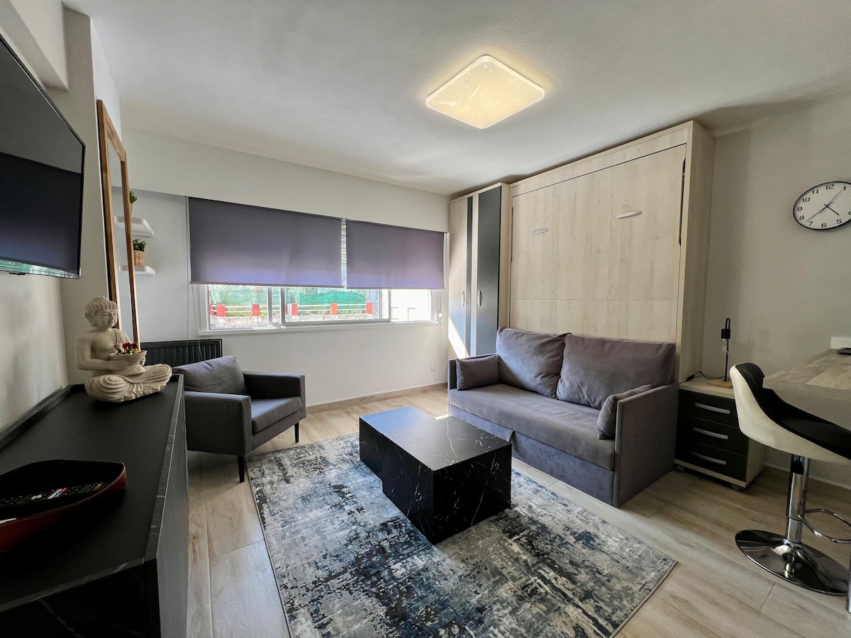 Apartamento completamente equipado con todo el menaje de cocina, horno-microondas, lava-secadora. Televisor smart Tv con brazo móvil para adaptar a las necesidades personales. Vestidor espacioso con perchas y cajonera más zapatero, con persianas eléctricas en el mismo. Iluminación natural muy buena y artificial con led regulables de intensidad en el salón. Sofá cómodo y amplio que se puede usar de cama de 2,45x1,08 aproximadamente. Ventanas de PVC con aislamiento acústico y térmico.