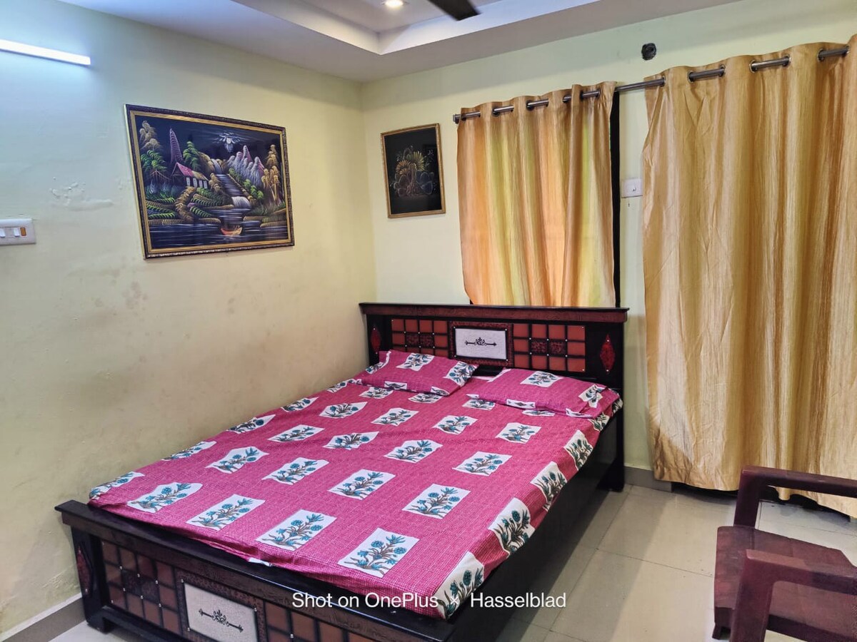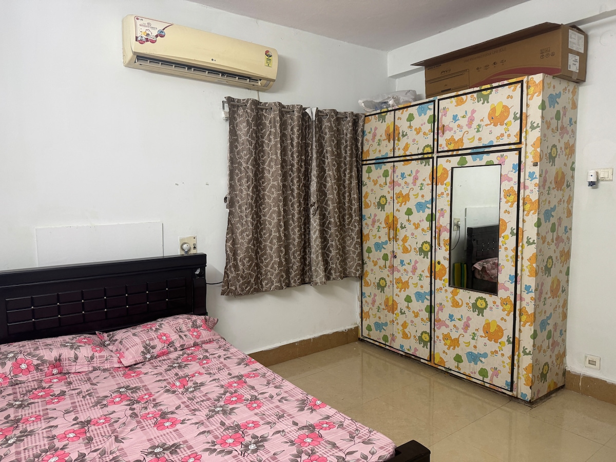Top Floor Sanctuary: Escape to uninterrupted peace! This spacious, top floor haven boasts a private top-floor suite with 2 large rooms. Ideal for families or groups, it offers 4 comfy beds & a squeaky clean bathroom. Enjoy AC, pristine furniture, and ultimate convenience - Groceries are right downstairs, and for entertainment or travel needs, the Inox theatre and the Railway station are just a 5-minute walk away. Relax & respect the space (newly built!).
