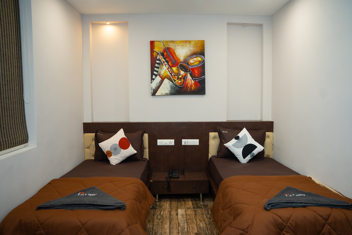 The Twin Room in Vijayawada at Hotel La Casa is designed for friends, family, or colleagues traveling together. These spacious rooms feature two comfortable twin beds, making them an ideal choice for guests who prefer separate sleeping arrangements. With a range of amenities and contemporary design, the Twin Room provides both comfort and style. Features: Two twin beds, complimentary Wi-Fi, flat-screen TV, workspace