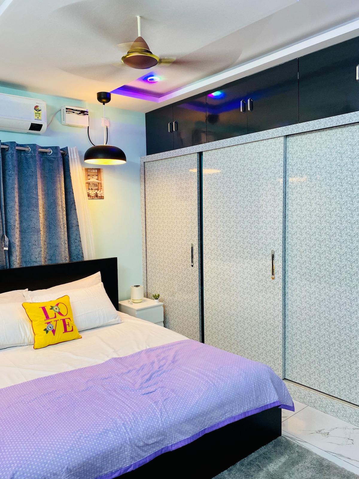 Top Floor Sanctuary: Escape to uninterrupted peace! This spacious, top floor haven boasts a private top-floor suite with 2 large rooms. Ideal for families or groups, it offers 4 comfy beds & a squeaky clean bathroom. Enjoy AC, pristine furniture, and ultimate convenience - Groceries are right downstairs, and for entertainment or travel needs, the Inox theatre and the Railway station are just a 5-minute walk away. Relax & respect the space (newly built!).
