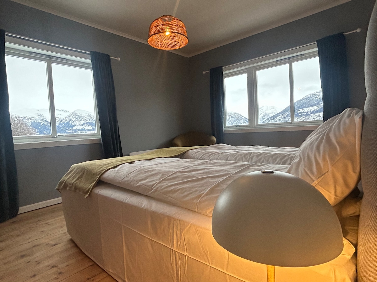 Enkelt og fredelig overnattingssted med sentral beliggenhet. Utsikt mot fjord og fjell. Kort vei til alle fasiliteter som butikk, kafè, restaurant, sjø og turområder.