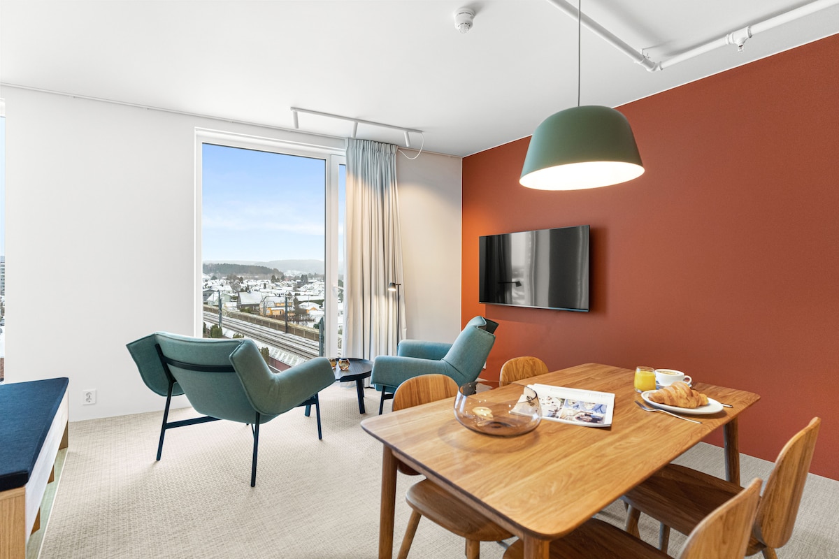 Enjoy the spacious 36sqm studios with "Leira" theme from the area of Lillestrøm. Everything for your stay is managed through our guest app, from checking in, accessing your room key, chat support and general information and checking-out.