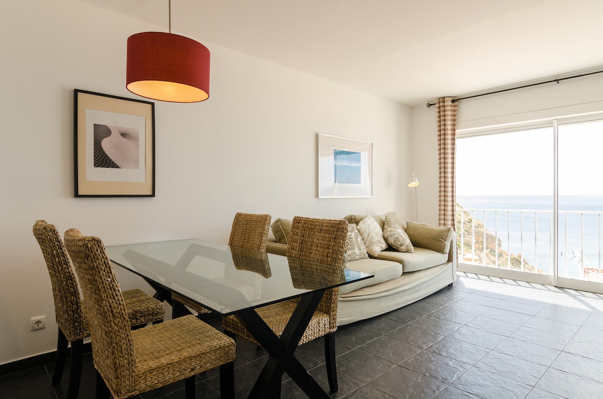 Apartamento em frente à praia do Beliche (Sagres) com magnifica vista mar situado em pleno Parque Natural, em condomínio com jardim, restaurante e esplanada; local muito sossegado. Parqueamento privado. Tem um quarto de casal, sala com sofá-cama (possibilidade de dormirem mais 2 pessoas), cozinha e casa de banho.