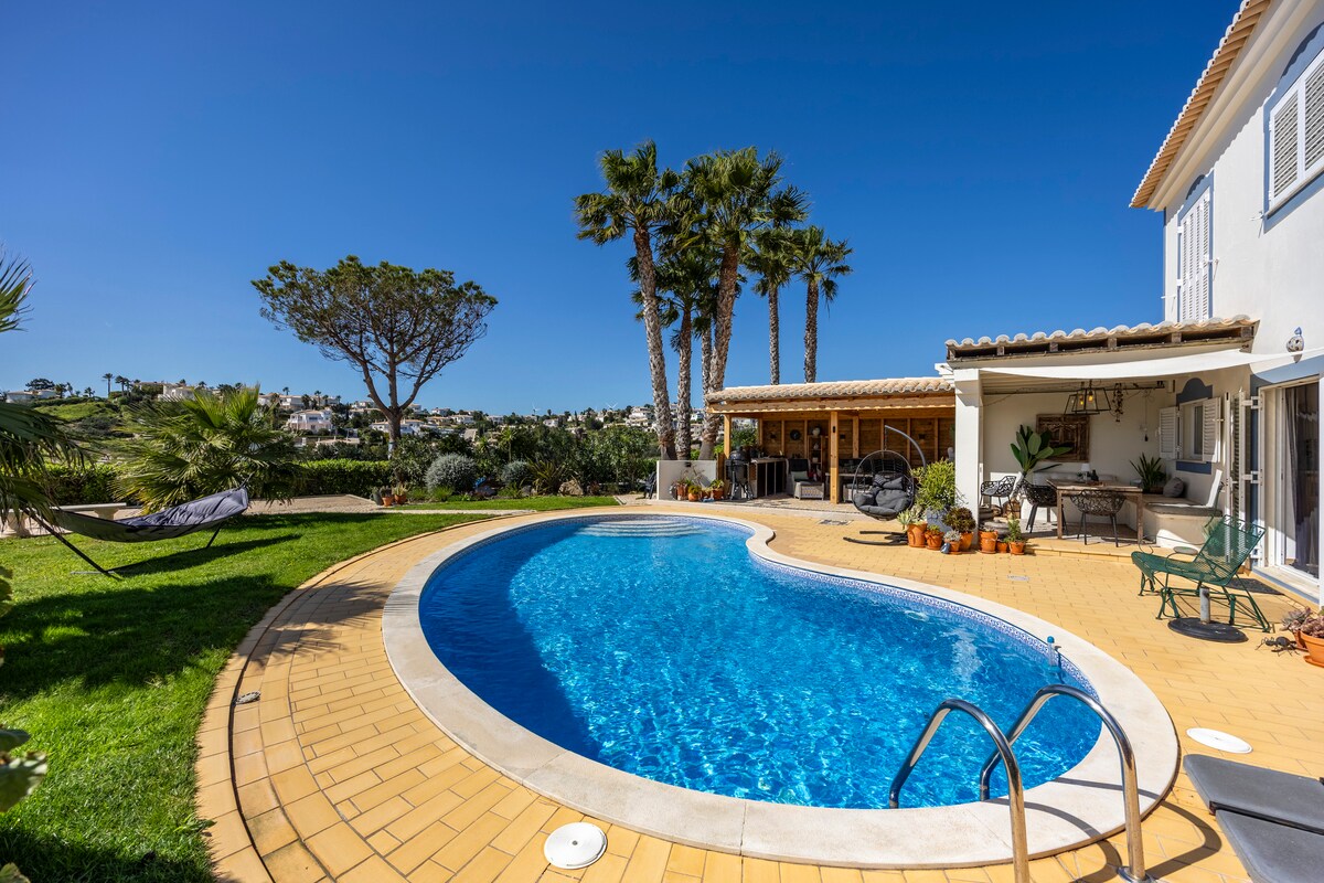 Casa Palmeira. Special offer! 10% remaining dates May - Sept. A 4 bedroom/3 bathroom villa with heated pool & hot tub in a gorgeous garden. Outdoor eating areas, roof terrace & bbq. Air con in all 4 bedrooms & in the study. The villa has free wi-fi, & is a front line golf villa on the Parque da Floresta Golf course. *Hot tub( all year) included in price. Pool heating included 1 May to end Oct. Outside those dates, please ask. New Vodafone wi-fi fibre supply. it’s unlimited and free!