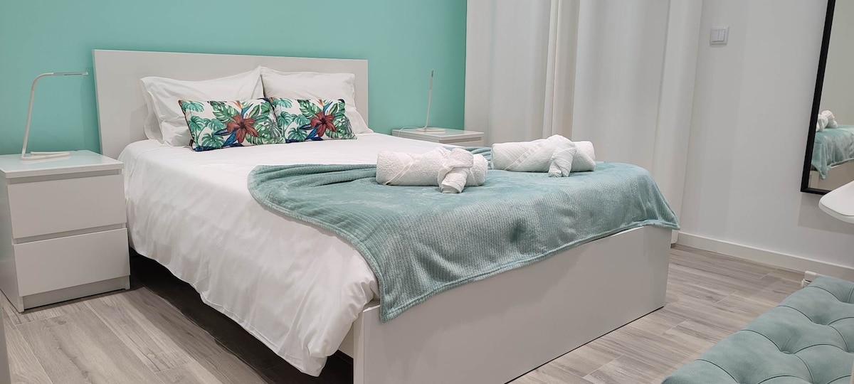 Casa Bela Vista is a happy, colorful family house. A place to rest your soul. Can accommodate 2-4 people and a baby or toddler, as we offer a travel cot if needed. It is a spacious house, consisting of 2 bedrooms, 2 baths, a kitchen, and a living room. Has a terrace with a panoramic view of the sea (south) and mountains. It is often possible to see by naked eye, groups of dolphins pass the sea of the Amora bay, a nearby beach where you can walk from home and enjoy!