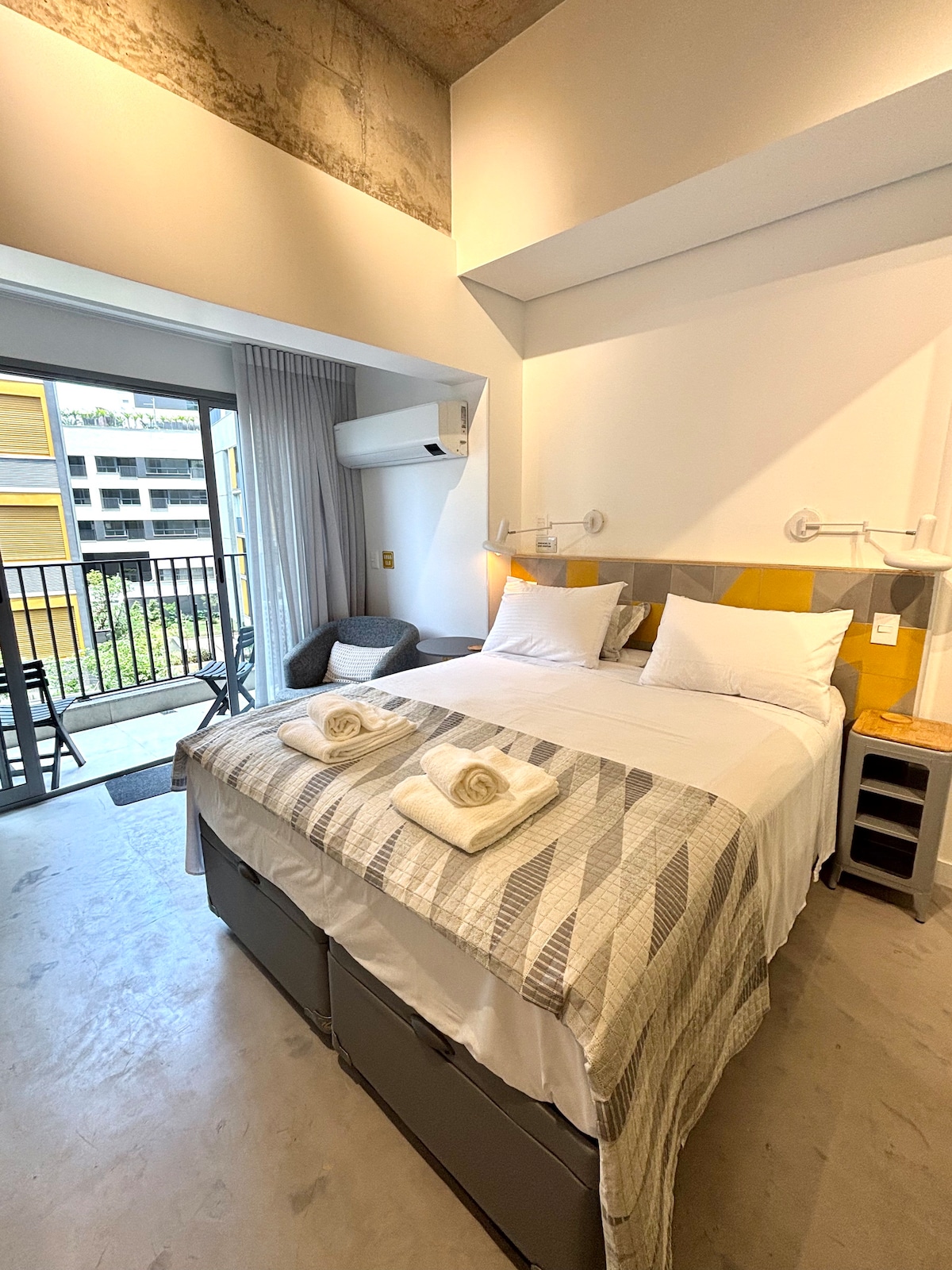 Studio Novo, 200m a pé da Estação Vila Madalena, na mesma rua dos melhores bares e restaurantes da Vila Madalena, 3 estações ou 10 minutos de carro da Av. Paulista, Jardins, próximo também do Estádio Allianz Parque! Relaxe neste espaço calmo e cheio de estilo! Linda acomodação totalmente climatizada, roupas de cama e equipamentos de ótima qualidade! Combinação de cores e iluminação na intenção de trazer todo conforto que você merece!