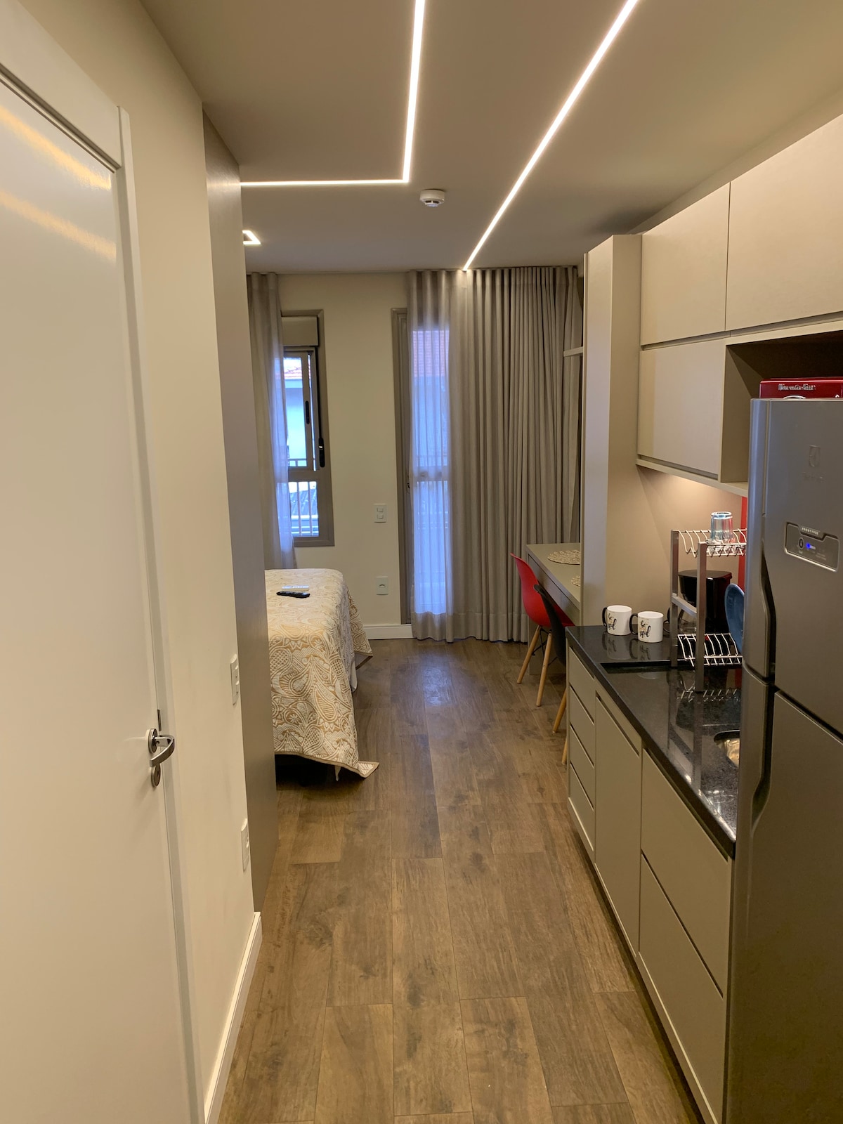 Studio novo, com design e arquitetura na Vila Madalena. O Studio fica em uma rua super calma e arborizada próximo aos principais bares, metro e restaurantes da charmosa vila madalena. Studio conta com ar condicionado, frigobar, cafeteira Nespresso, colchão da marca Emma e todo conforto para uma estadia muito especial em SP. O prédio tem academia super completa, lavanderia e piscina.