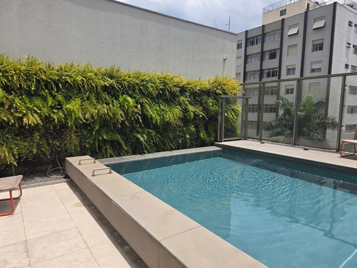 阳光单间公寓@ Vila Madalena,带空调和游泳池