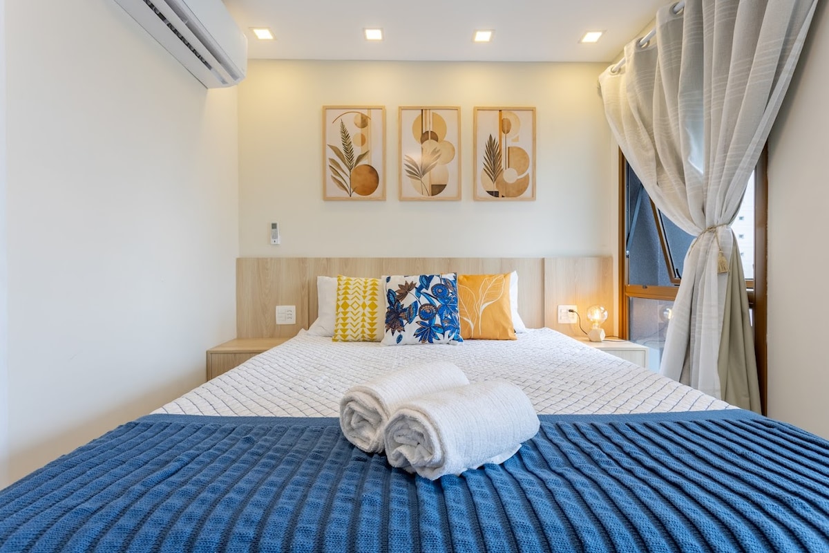 Boutique studio in the heart of Perdizes, featuring a design project. Custom carpentry, signature leather bed, 500-thread count linens, sisal rug, blackout curtains, AC. Curated tableware by Casa Delas — all available for purchase. Two handcrafted pieces from the Northeast add soul to the space. Climate-controlled wine fridge with bottles for sale, cozy dining nook, illuminated glass cabinet and a boutique hotel atmosphere. For stays of 7 nights or more we offer a breakfast on the first day.