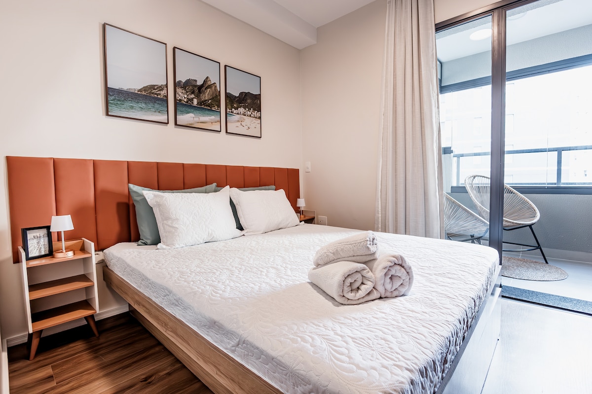 Experience One Eleven in Vila Olimpia. This modern apartment features large windows with breathtaking city views and natural light. The unit boasts 600 Mbps internet and a 4K HD TV. For total comfort, it has a Hot/Cold AC system: 27,000 BTU/h unit in the living room and 10,000 BTU/h in the bedroom. The bedroom is quiet and dark for a restful sleep. Impeccably maintained, you’ll be walking distance to top restaurants and business hubs—a safe, upscale retreat with a stunning urban backdrop.