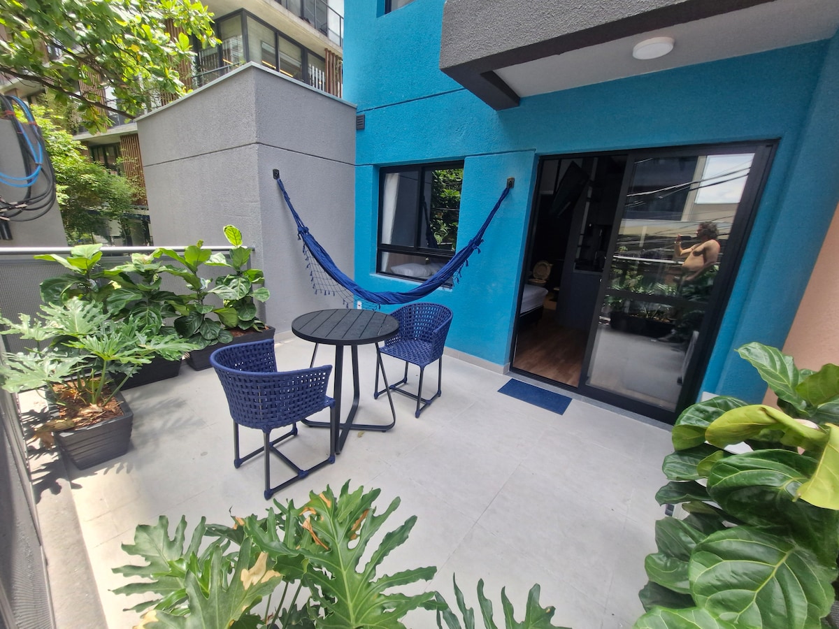 Relax in the best location of São Paulo, between Jardins and Pinheiros. This newly opened studio is a 5-minute walk to the Oscar Freire subway station, in a new building with all the infrastructure for a quiet and comfortable stay. It is on top of a bakery with artisan bread and across the street from a supermarket. The building has coworking and coliving space, laundry room, gym, rooftop pool, and a 24-hour doorkeeper. Wi-Fi 450Mbps.