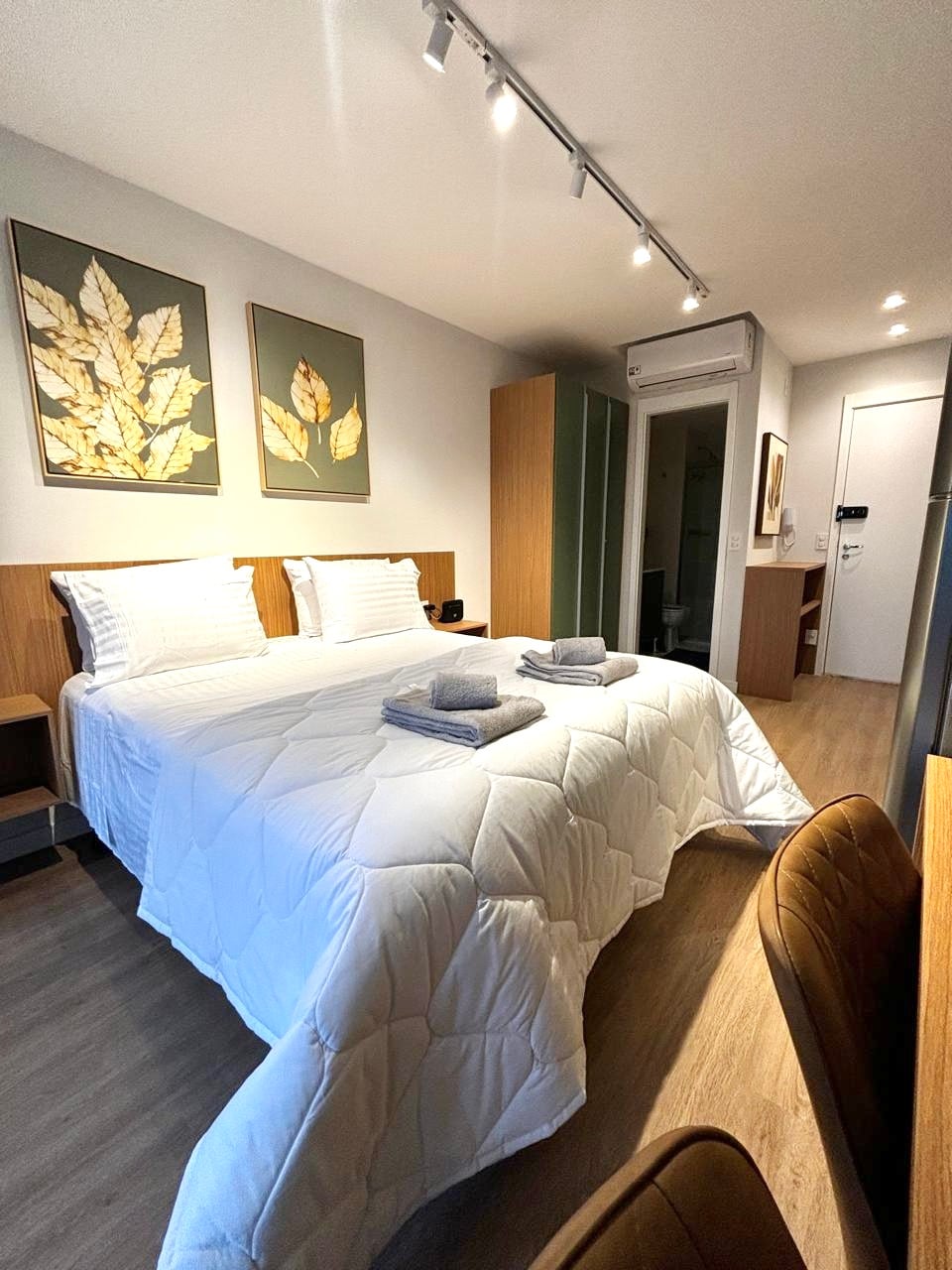 Studio de Luxo na Rua Oscar Freire Moderno, sofisticado e completo, na rua mais famosa de São Paulo pelas lojas de luxo. Studio no 24º andar, de frente, com vista magnifica para Av Paulista. Bem equipado, com TV 55 polegadas, Wifi Internet Vivo Fibra 200, TV a cabo, Ar Condicionado silencioso, Cafeteira, Cooktop e Frigobar, Cortina black-out automatizada, Vaporizador de roupa portátil, Utensílios de cozinha, Secador de cabelo, Lençóis e Toalhas macios, sabonete e kit shampoo/condicionador.