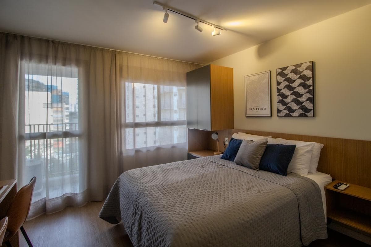 Enjoy the bohemian and artistic Vila Madalena, full of bars, restaurants and cafes. You can get to know the region or even take a tour to city parks with a bike, avaiable free of charge. Will you come to work? Focus on it at the confortable table facing the green balcony with a beautiful view of the tree tops. After all, enjoy the gym, poll, sauna and snooker room for your complete leisure.