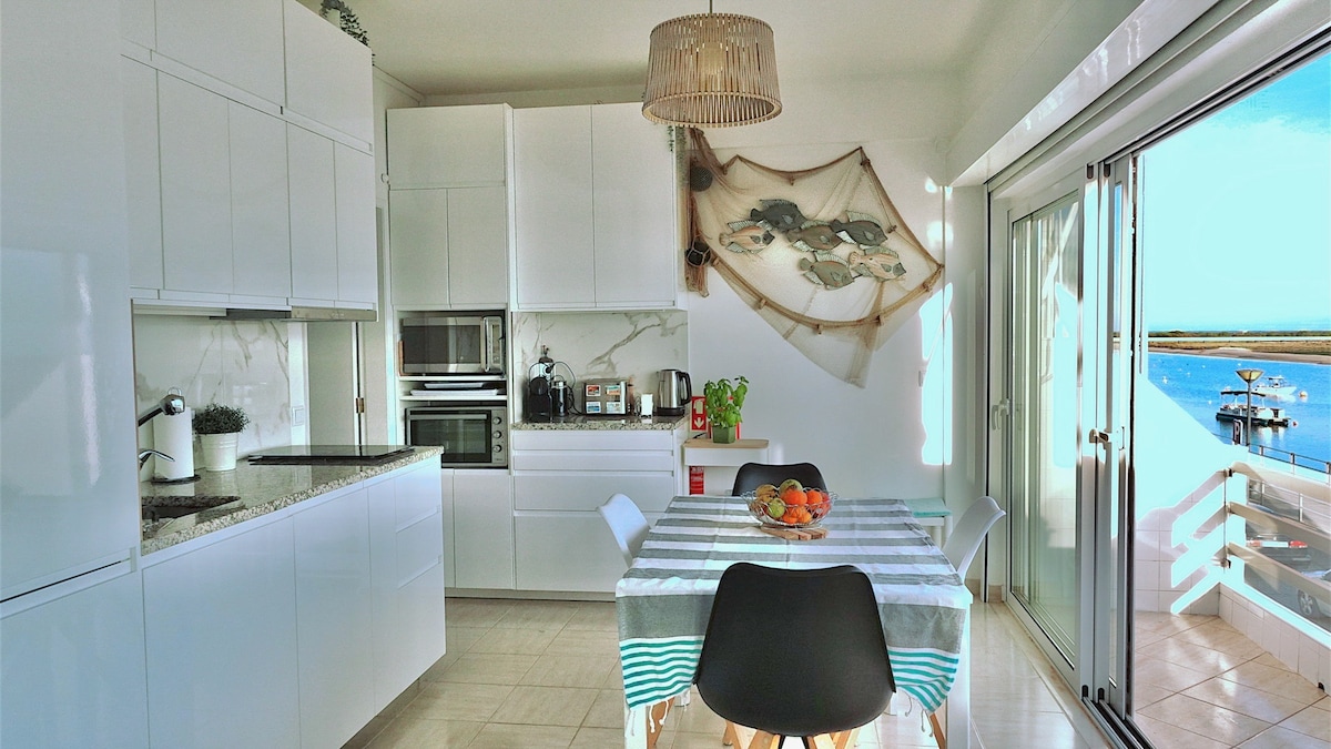 The apartment has a magnificent view of the "Ria Formosa" lagoon and it is located on the front line close to all kinds of commercial services, equipped with everything you need to make you feel at home. You just have to cross the street to get to the boarding pier for one of the best beaches in the Algarve. On the edge of the lagoon is a small fishing village, a footbridge will allow you to walk while enjoying this superb view of the lagoon.