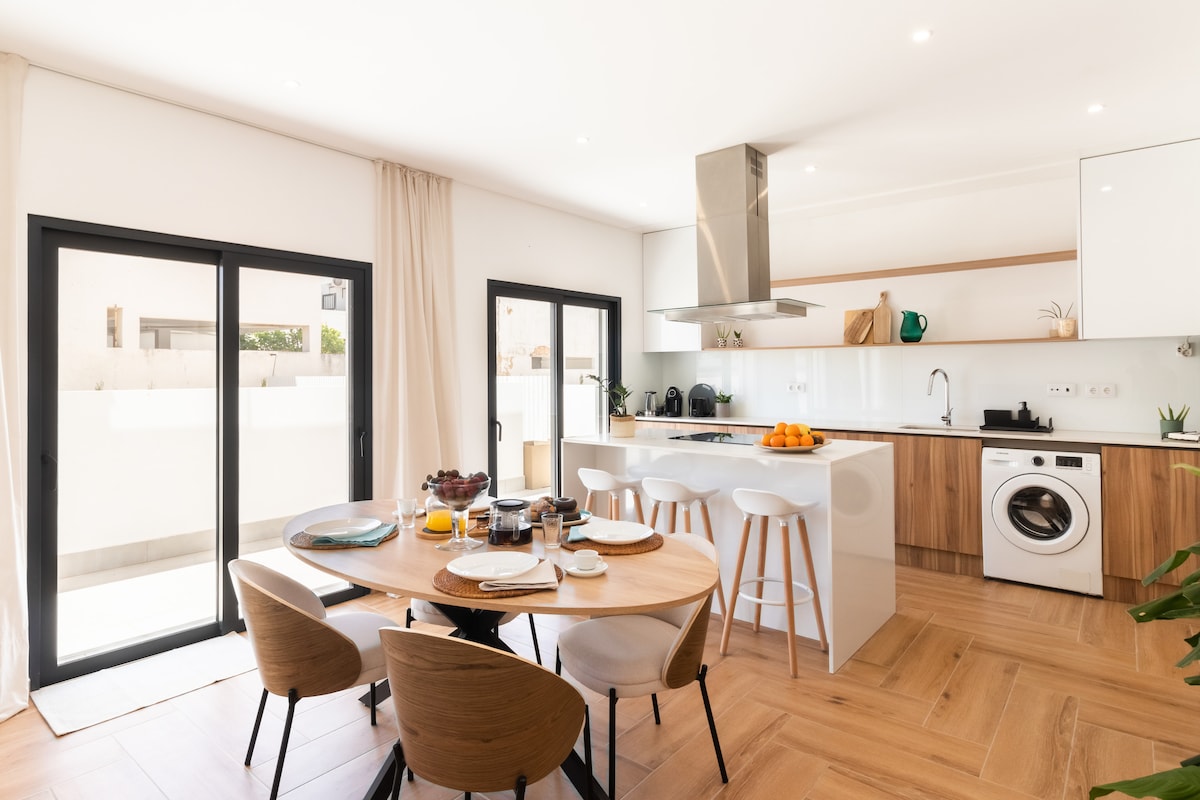Welcome to our brand new house in the heart of Vila Nova de Milfontes! This beautifully decorated home combines the serene simplicity of Japanese aesthetics with the warm coziness of Scandinavian design, also known as Japandi style. Just a 30-second walk away, you'll find yourself on the lively main street of the village, and within 10 minutes you can reach one of Portugal's most stunning beaches.