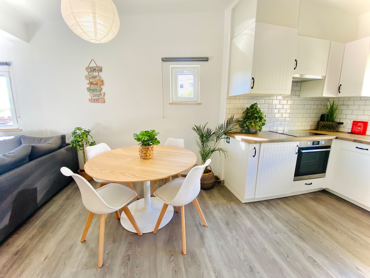 New stylish 2-Bedroom apartment very close to the beach. Our apartment invites you to enjoy the best of the Southwest of Portugal, where you will find sunny days, beautiful beaches, great surf spots for all levels, cycling routes and trekking trails. The apartment has 1 Master suite, a 2-single bed bedroom and a sofa-bed in the living room, comfortably accommodating up to 6 people. In the apartment's private garage there are free bikes and surfboards for our guests to use during their stay.