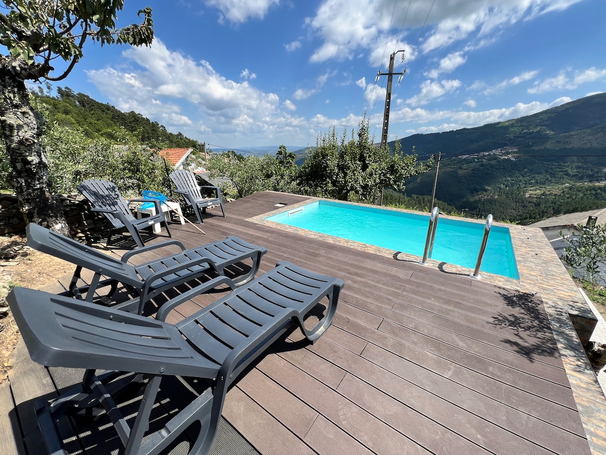 An independent Family House H1 facing Tamega Valley with spectacular views in a country setting! Shares with a second similar House H2: market garden and swimming pool. Perfect to explore: Amarante nearby town, Porto city, the Douro valley and its vineyards, Guimaraes heritage and the West Coast of Europe. 4 room; 3 bath; kitchen; dinning room; fireplace; terrace; garden. Common resources: swimming pool 12x4m; market garden, car park. Standard: families up to 6 persons ; Min: 3 days