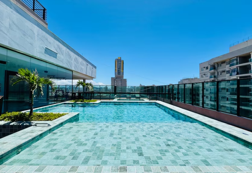 Cobertura com Jacuzzi e vista para o mar com teto solar. Muito espaçosa (65 m2). Melhor ponto da Praia da Costa, a melhor praia de Vila Velha! Cozinha totalmente equipada com utensílios diversos para bar, coqueleteria e taças finas. Suíte climatizada, confortável e aconchegante. Simplesmente a melhor experiência de hospedagem de Vila Velha! Sua estadia por aqui será perfeita! SÓ VEM !!!