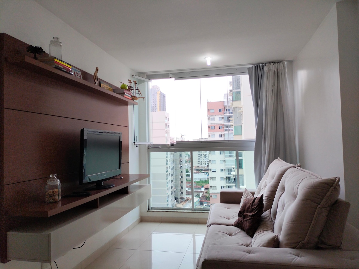 Hospede-se neste lindo loft privativo que possui todo conforto necessário para sua viagem a lazer ou negócios em Vitória Localizado de frente a Praia de Camburi, possui fácil acesso ao aeroporto de Vitória (3min) Oferecendo maior segurança, você terá a disposição a recepção 24h e terá acesso ao clube com piscinas infantis e adulto, sala de jogos, bar e petiscaria e diversas quadras. A T E N Ç Ã O O LOFT COMPORTA BEM 2 ADULTOS NA CAMA KING + 2 CRIANÇAS NO SOFÁ-BI-CAMA. TEMOS BERÇO DISPONÍVEL! =)