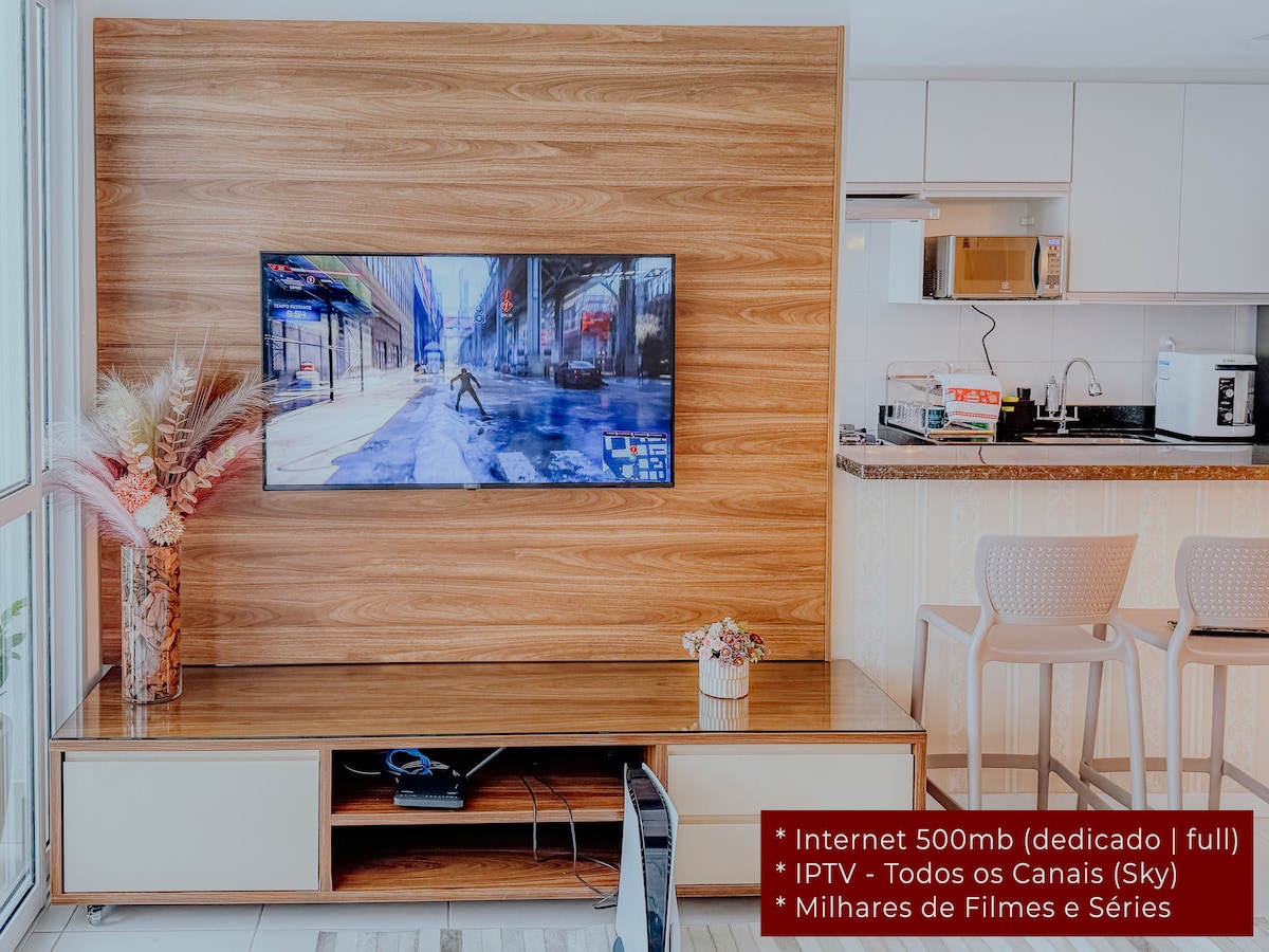 Perfectly positioned in Praia da Costa, this luxury apartment sits just a short walk from the beach. You’ll be minutes from the sand and surrounded by the neighborhood’s best dining. The space is equipped with powerful A/C to keep things cool, and the building offers 24/7 security for complete peace of mind. It’s a well-located, comfortable base for anyone looking to enjoy Vila Velha’s coastline in a professional, secure environment. Complimentary garage parking is included in your stay.