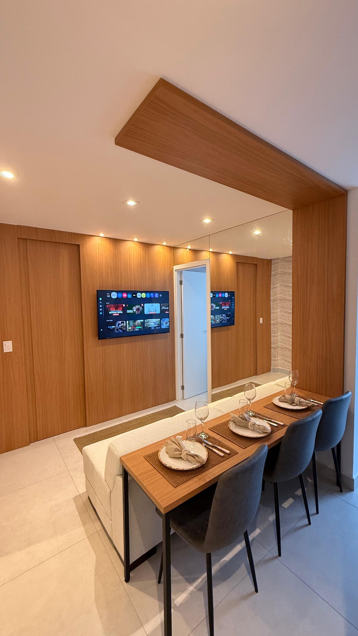 Apartamento novo e aconchegante a poucos metros da praia de Beverly Hills, Itapuã, Vila Velha/ES. Apartamento inteiro, completo, área de lazer na cobertura com piscina e sauna liberada para utilização do hóspede. O Apartamento possuí cozinha completa, sala com smart tv e ventilador de teto, banheiro com chuveiro elétrico, lavanderia, quarto climatizado (split) e com smart tv, Bairro calmo, excelente vizinhança.