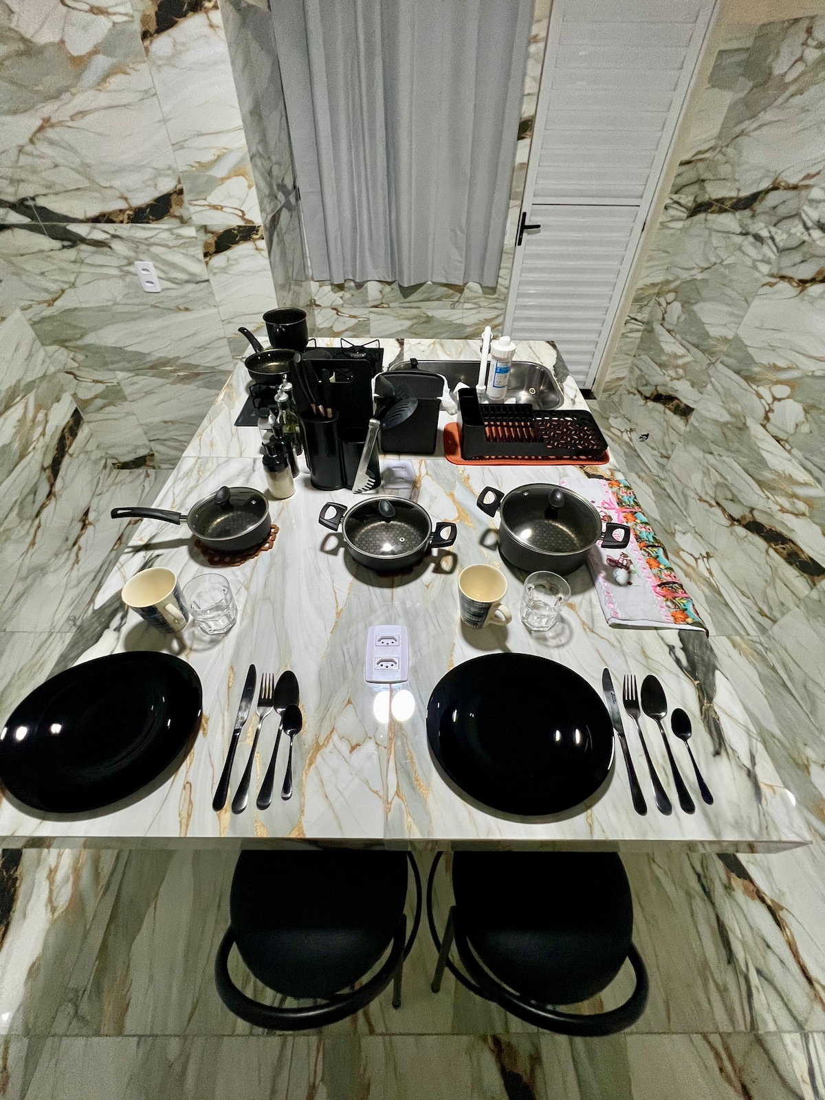 🏠 O Espaço Aproveite um apartamento prático, aconchegante e bem localizado! Ideal para quem busca descanso, comodidade e fácil acesso aos principais pontos da cidade. Suíte com cama queen confortável Sala de estar integrada com cozinha americana Varanda agradável para relaxar Wi-Fi, TV a cabo e portaria 24h 1 vaga de garagem disponível A cozinha está equipada com: • Micro-ondas • Frigobar • Fogão • Panelas, talheres, pratos, copos e xícaras obs: GARAGEM NÃO COMPORTA CARROS GRANDES.