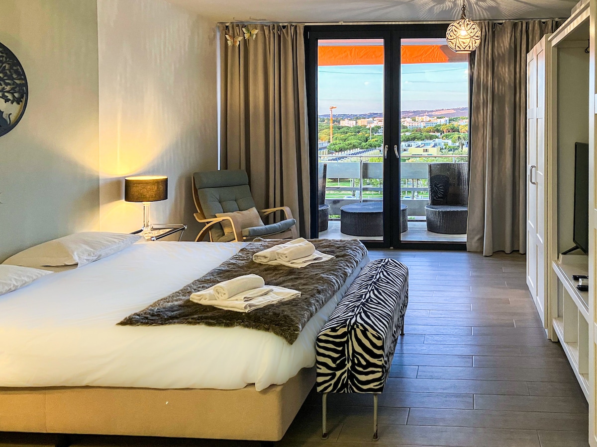 Bem-vindos! Welcome to our modern apartment for 2 with handmade bathtub in Vilamoura (25 min to Faro airport). From here, the center of the beautiful Algarve, you walk within 10 min to our beautiful Marina, well known for its' colorful nightlife with several bars & restaurants. Within a 15 min. walk you enjoy one of the several amazing beaches. As caring hosts, we will do our best to guarantee you a perfect, cozy stay. The check-in can be done via key box and parking is for free :)