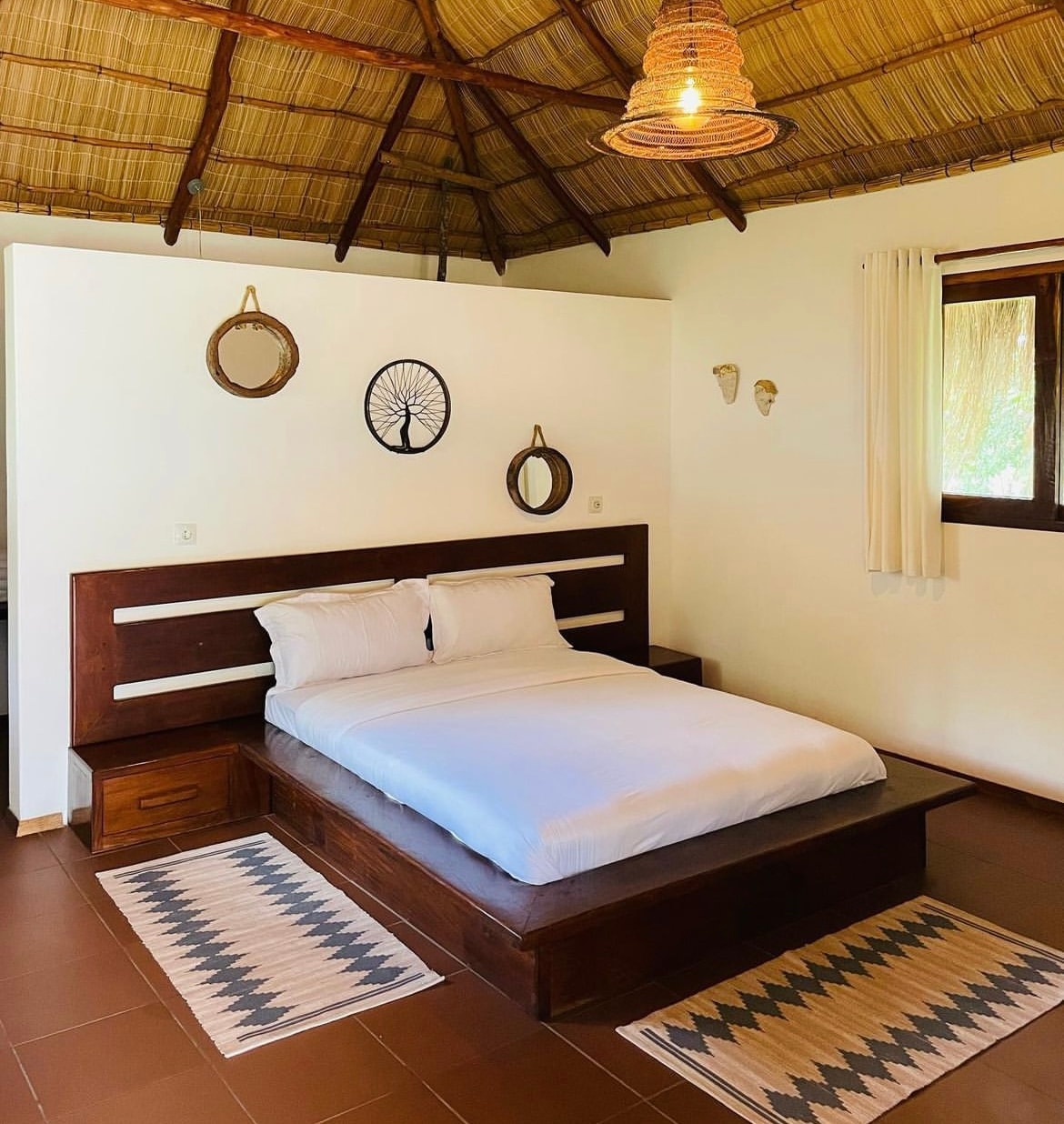 Our peaceful offgrid solar family bungalow, just 20 km north of Vilanculos town is true serenity. Surrounded by nature with very little around, it’s the perfect escape for anyone wanting space and simplicity with unbeatable Mozambican sunrises and ocean views. Spend your day on the white sand beach just a 200m walk away or island hopping and exploring Vilanculos. End it with a braai and sundowner on the veranda as the the sky explodes with a million stars and the rising moon lights up the ocean.