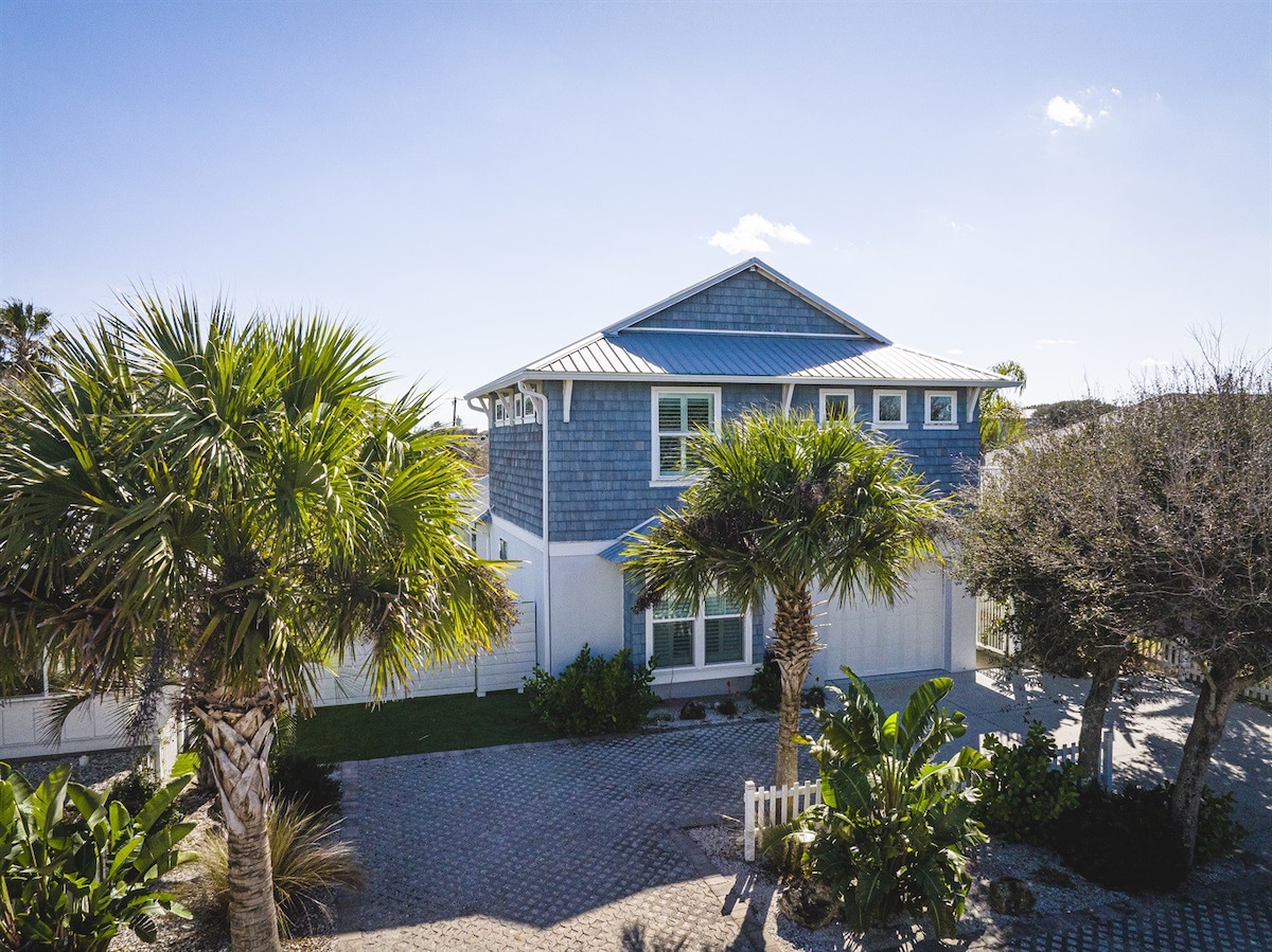 Welcome to Once Upon a Tide Beach House in Vilano Beach (Salted Heated Pool) This brand new luxury beach house is in a perfect location. 3 blocks to the beach , 1 block to the intracoastal . A short drive to Historic Downtown St. Augustine. Very spacious and well pointed home with 2 living rooms, the main living room is on the first floor and a second living room is upstairs in the loft area. Private back yard oasis with a salted heated pool, cabana. I promise you will not want to leave!