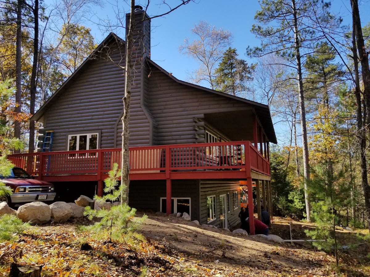 Luxury Northwoods Lodge perfect for groups with three king bedrooms, four queen alcoves, a queen futon, and a twin sofa sleeper is sure to provide a great northwoods experience! Our amenities include outdoor hot tub, large lakeside deck with outdoor tv and gas firetable, custom bar and game room, gentle slope to the sandy bottom lake, kayaks, paddle board, row boat, private pier, custom bag toss game, Weber and blackstone grills, kitchen is fully stocked to meet all your needs!